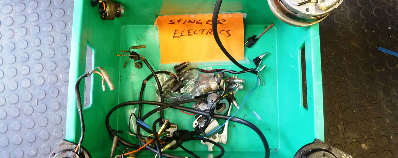Do you wither at the whisper of wiring and cringe at the sight of connectors? Welcome to my world; I get by when it comes to vehicle electrics, but I can’t say it’s a favourite topic for me. My Suzuki Stinger is a case in point. I’ve known from day one that it would need attention in all areas but to be honest, until recently it was such a shed that the sparks side of things was the least of her worries. With the tinware now finally on track, I need to up my game and look at what’s missing, knackered or in need of serious TLC. Therefore I’ve had to bite the bullet (3.9mm push fitting type) and work out what I can salvage, what needs work and what I need to track down.