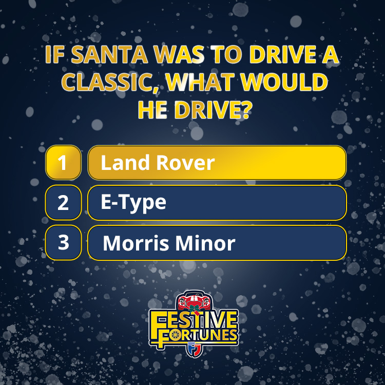 “A bright red Jaguar E-type 2+2 because when not driving his reindeer sled he can have some high octane excitement between parcel deliveries.”